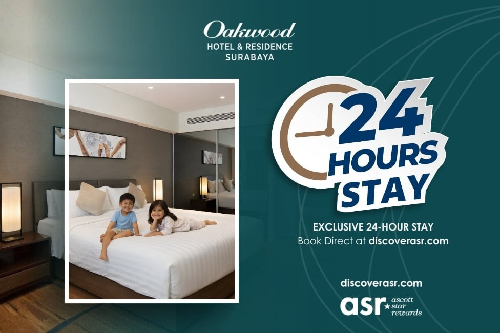 Satu hal yang jarang ditemukan di hotel lain adalah kebijakan waktu menginap yang fleksibel. Di Oakwood Surabaya, Anda bisa menikmati 24H Stay, yang artinya jika Anda check-in jam 4 sore, Anda bisa check-out jam 4 sore keesokan harinya. Benar-benar definisi istirahat tanpa terburu-buru.