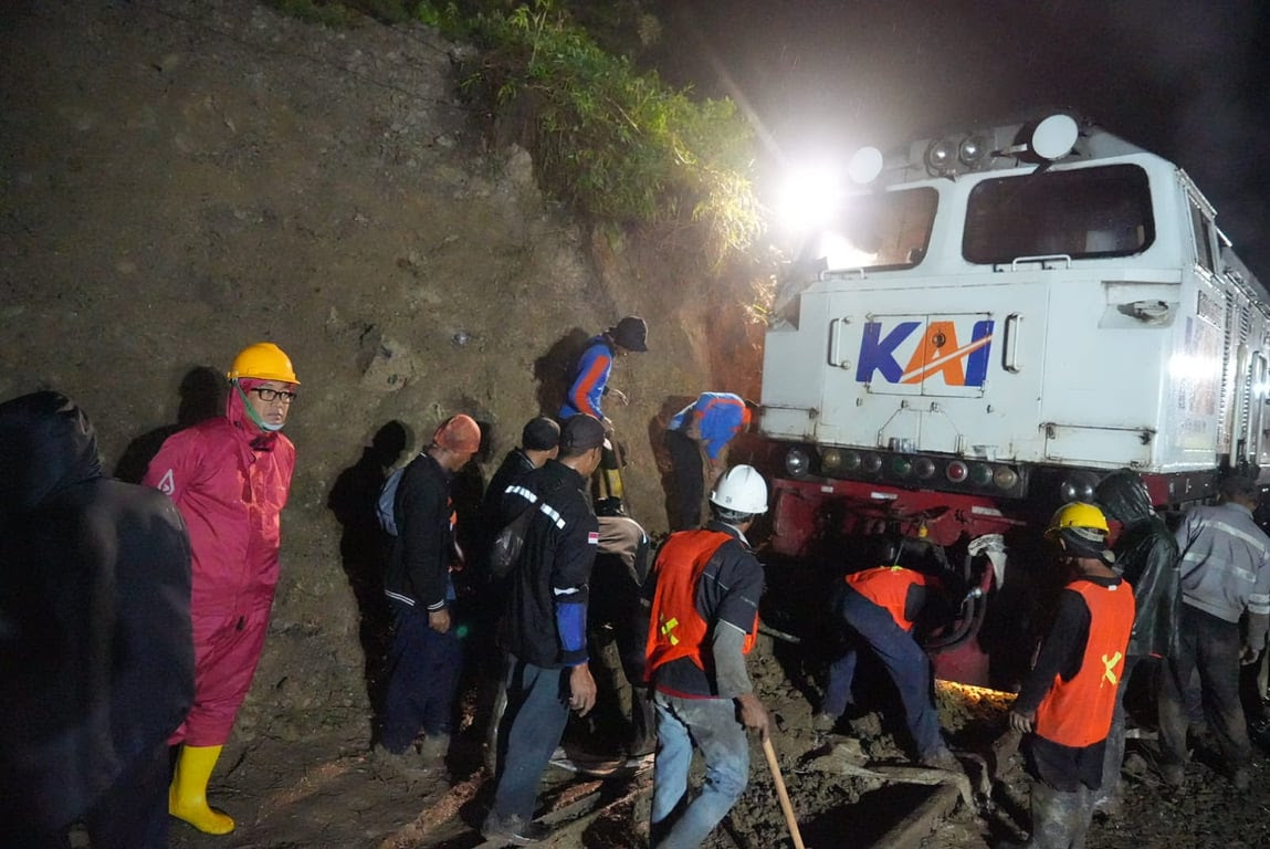 Selain evakuasi sarana, KAI Daop 2 Bandung juga telah menyelesaikan pembersihan material longsoran yang menutupi jalur rel. Material tanah dan bebatuan yang sempat menghambat perjalanan kereta berhasil disingkirkan, sehingga jalur rel kini sudah kembali dapat dilalui.