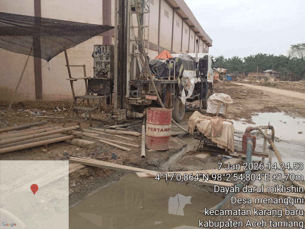 5. TK Nurul Ikhlas Telaga Meuku II, Banda Mulia: Pilot hole selesai pada 82 meter dan memasuki tahap persiapan konstruksi sumur.