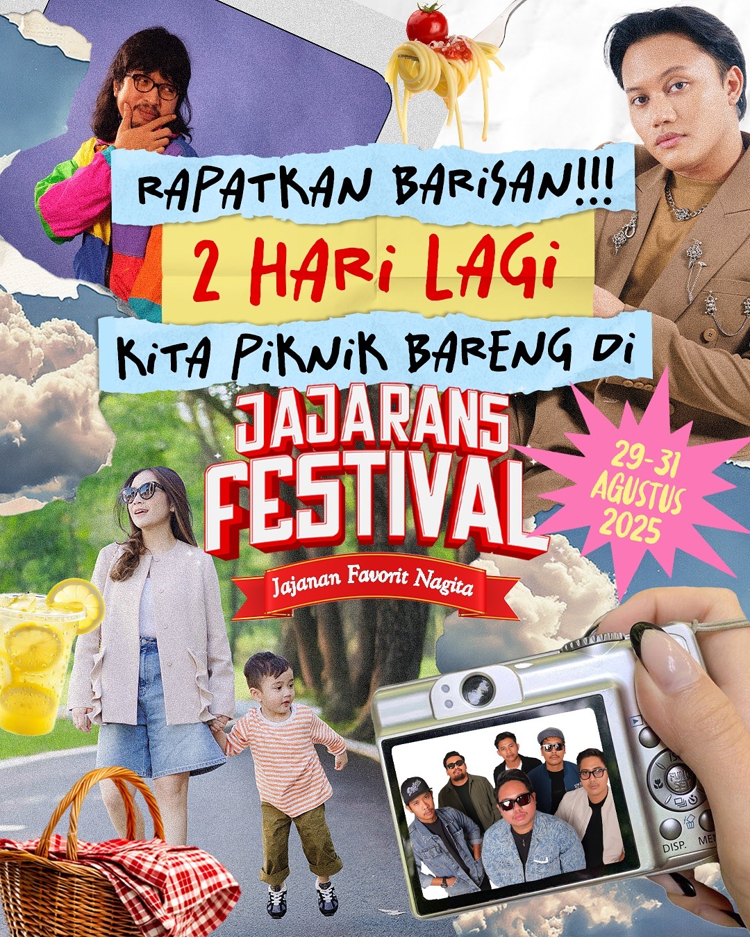 Bekasi, 27 Agustus 2025 – Jajarans Festival: Spesial Favorit Nagita akan berlangsung pada 29 hingga 31 Agustus 2025 di Mega Bekasi Hypermall, Kota Bekasi. Acara ini merupakan festival kuliner yang menampilkan beragam pilihan makanan dan minuman dengan konsep piknik keluarga.