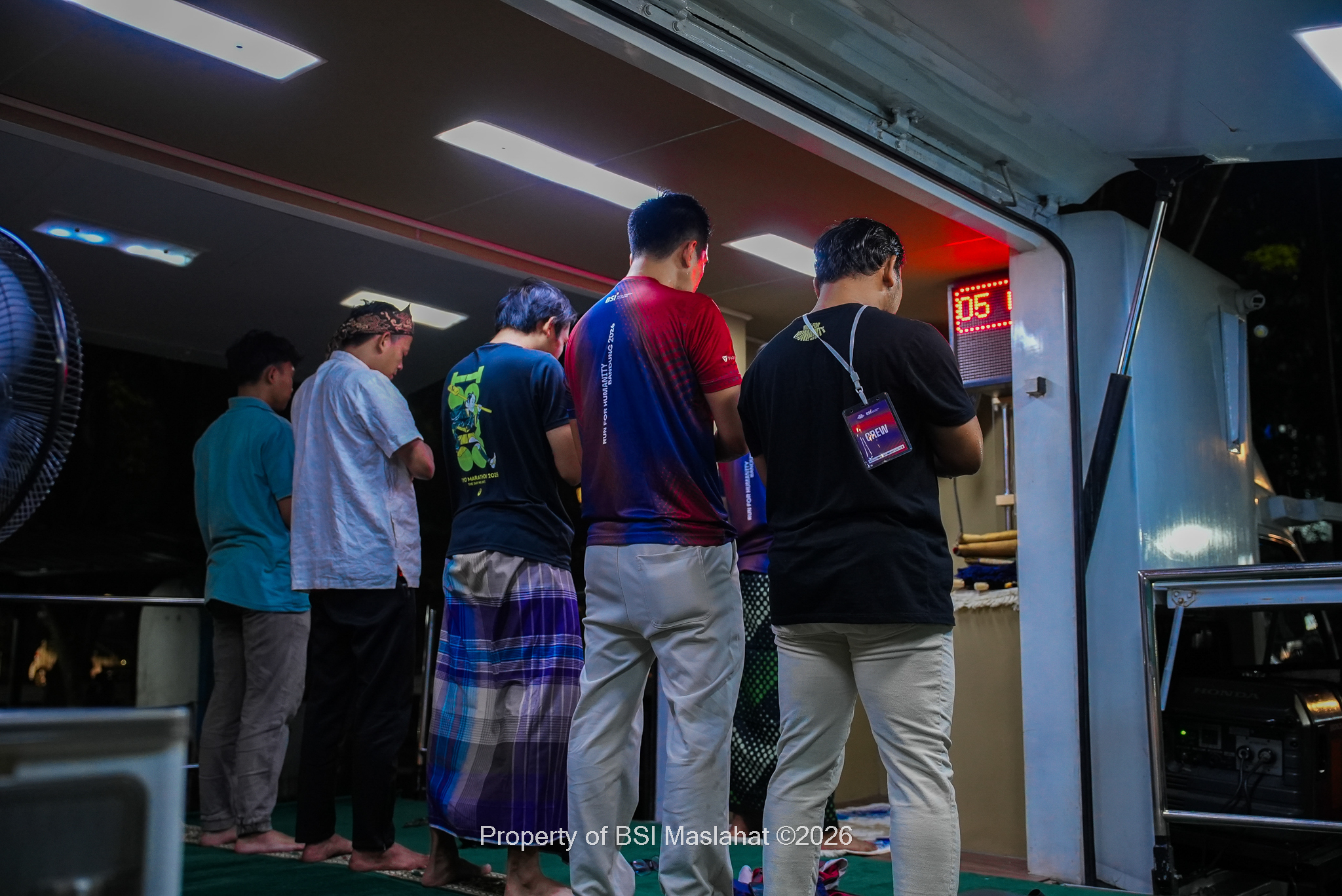 Salah satu wujud nyata tersebut adalah kehadiran Mobil Musholla BSI Maslahat. Sebuah fasilitas yang mungkin terlihat sederhana, tetapi memiliki makna yang dalam. Di tengah aktivitas yang padat, mobil musholla ini menjadi ruang hening bagi mereka yang ingin sejenak menepi, menunaikan ibadah, dan mengisi kembali energi batin. Kehadirannya seolah mengingatkan bahwa di tengah kesibukan dunia, hubungan dengan Sang Pencipta tetap perlu dijaga.