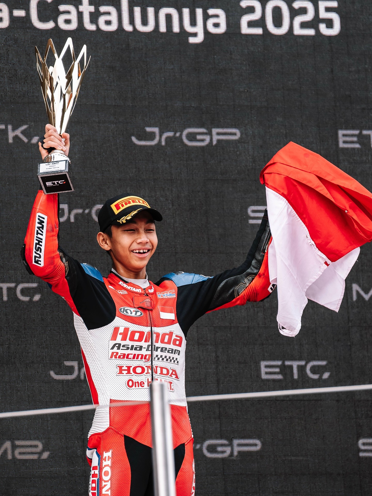 5 November 2025 โ Pebalap muda Indonesia, Muhammad Kiandra Ramadhipa, mencatat kemenangan bersejarah dalam ajang European Talent Cup (ETC) 2025 di Circuit de Barcelona-Catalunya, Spanyol. Raihan ini menjadi salah satu pencapaian penting bagi pebalap berusia 15 tahun tersebut dalam musim debutnya di Eropa.
