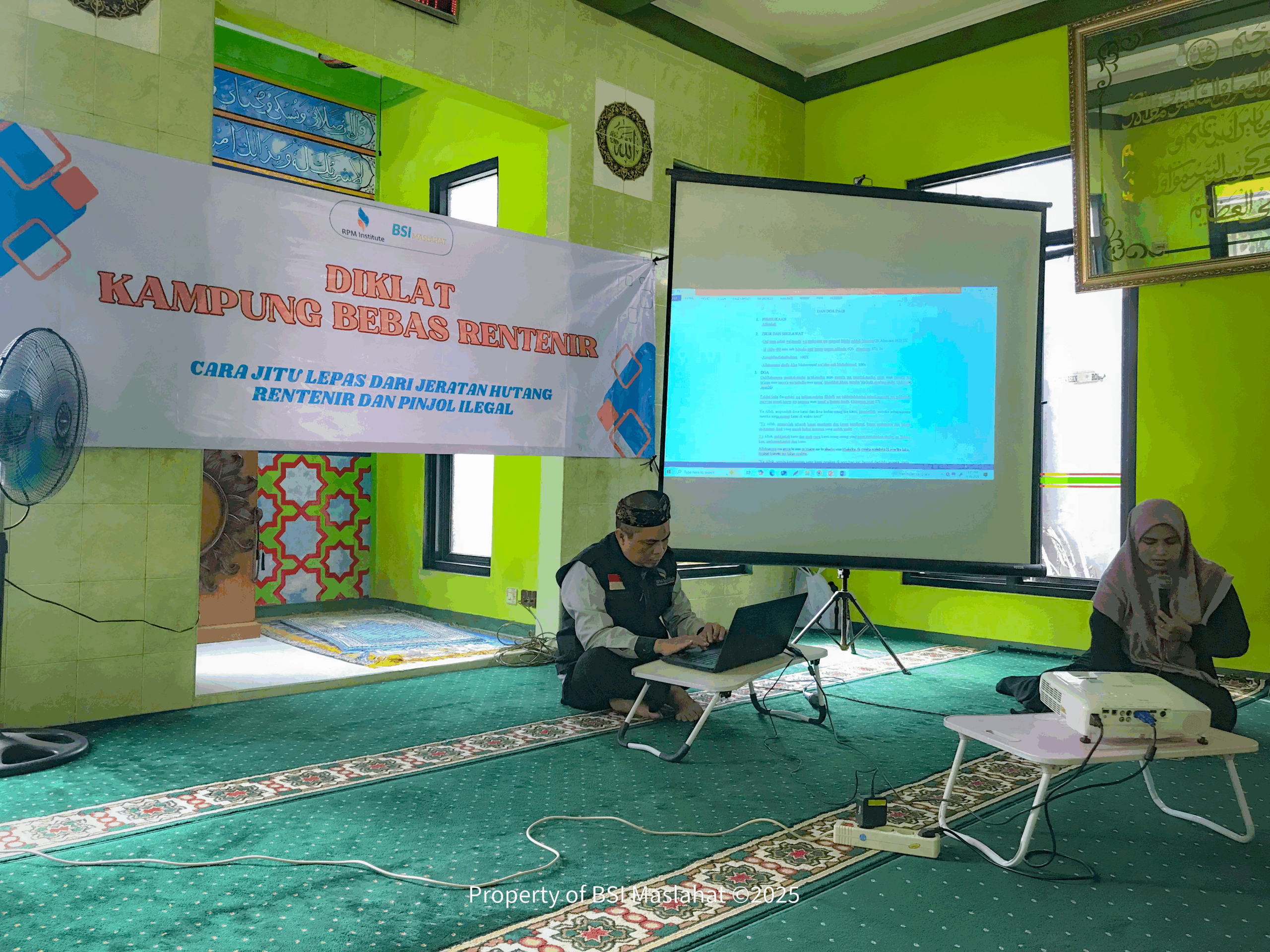 Depok, 29 Oktober 2025 — BSI Maslahat memberikan edukasi anti riba dan bantuan modal usaha bagi masyarakat Depok dalam program Diklat Kampung Bebas Rentenir. Edukasi tersebut dalam bentuk literasi keuangan dan edukasi bebas dari jeratan riba melalui pinjaman online dan praktik rentenir. Program ini dilaksanakan selama 6 (enam) kali pertemuan dari September hingga Oktober 2025, di Pondok Petir, Bojongsari, Depok.