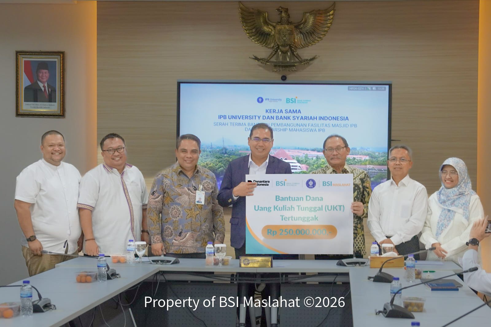 “Kami mengucapkan terima kasih atas dukungan dan kerja sama yang konsisten dari BSI dan BSI Maslahat. Bantuan ini sangat berarti bagi mahasiswa IPB yang sebagian besar berasal dari keluarga kurang mampu, sehingga akses pendidikan di IPB tetap terbuka, inklusif, dan ramah secara sosial. Kami berharap dukungan ini dapat terus meningkat agar manfaatnya semakin luas dan dapat dirasakan oleh lebih banyak anak bangsa,” tuturnya.