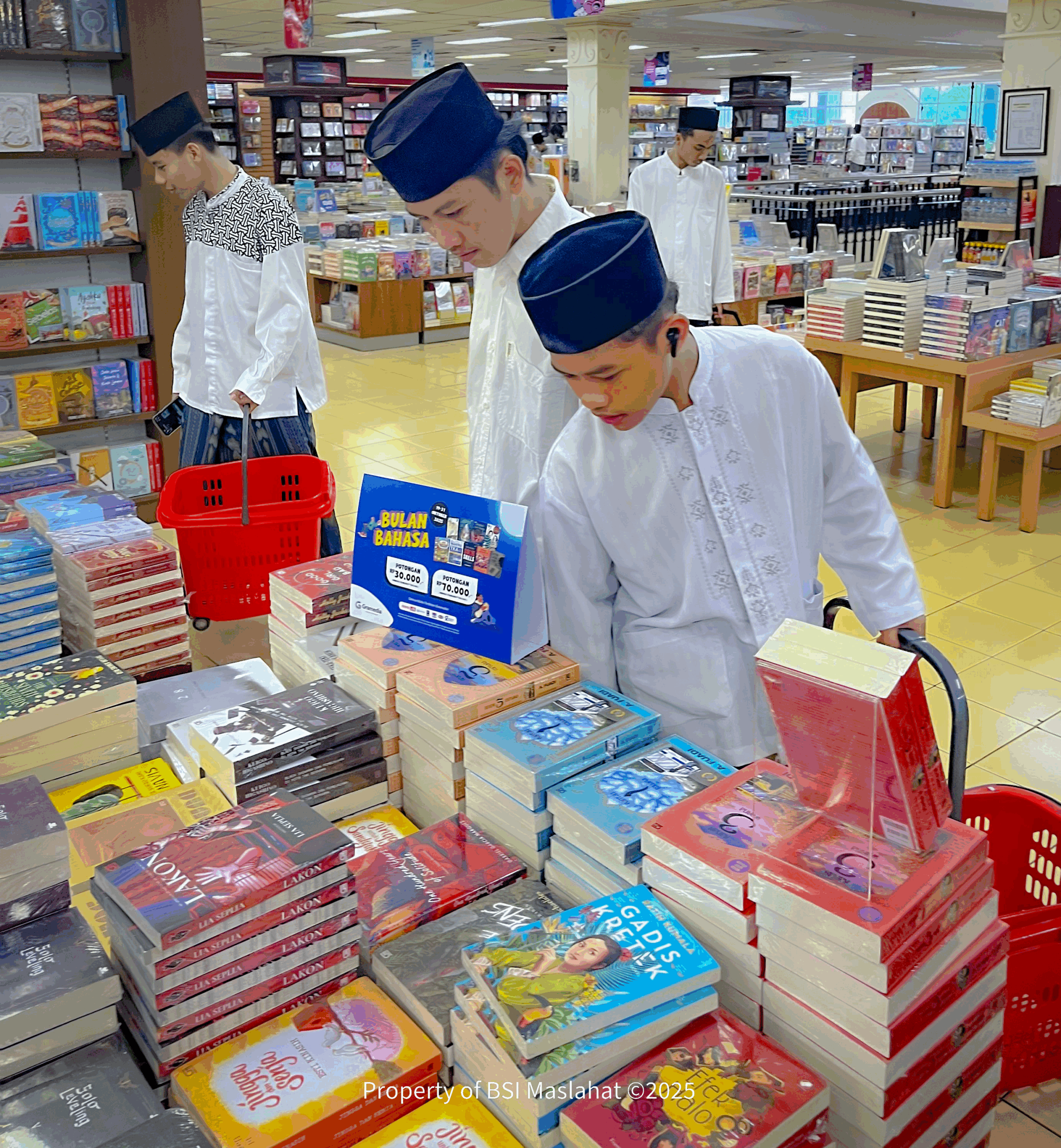 30 Oktober 2025 — BSI Maslahat tanamkan semangat literasi di kalangan santri melalui  program “Santri Cinta Literasi” dengan mengajak santri Rumah Qur’an Bina Santri Indonesia  berbelanja buku. Kegiatan ini digelar dalam rangka memperingati Hari Santri Nasional.  Program ini diselenggarakan serentak pada 22–25 Oktober 2025 di tujuh Rumah Qur’an Bina  Santri Indonesia yang tersebar di berbagai wilayah Indonesia.