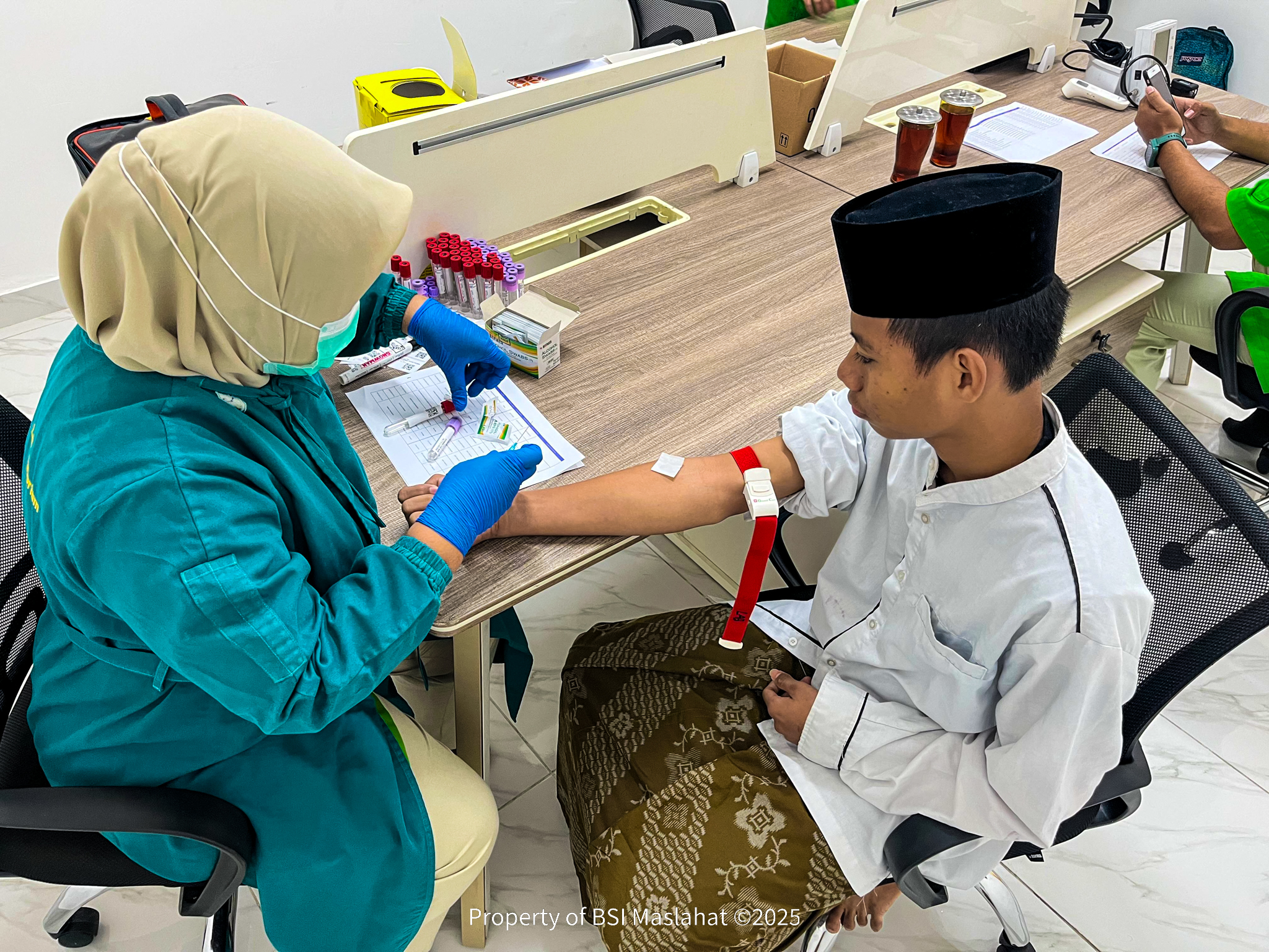 25 Juli 2025 – Dalam rangka mendukung kesehatan para santri Rumah Quran Bina Santri Indonesia  (BSI), BSI Maslahat memberikan layanan pemeriksaan kesehatan serentak bagi  santri Rumah Qur’an Bina Santri Indonesia di berbagai wilayah Indonesia. Kegiatan  ini merupakan bagian dari komitmen BSI Maslahat dalam menciptakan lingkungan  belajar yang sehat dan produktif bagi para santri yang tengah menempuh pendidikan  agama.