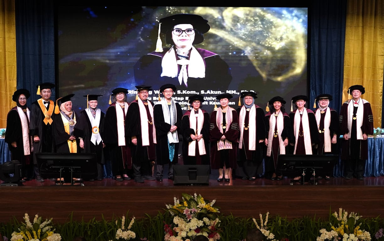 BINUS University mengukuhkan Prof. Rindang Widuri, S.Kom., S.Akun., MM., Ph.D. sebagai Guru Besar Tetap di bidang Teknologi Audit Keuangan, yang berfokus pada transformasi praktik audit di era digital.