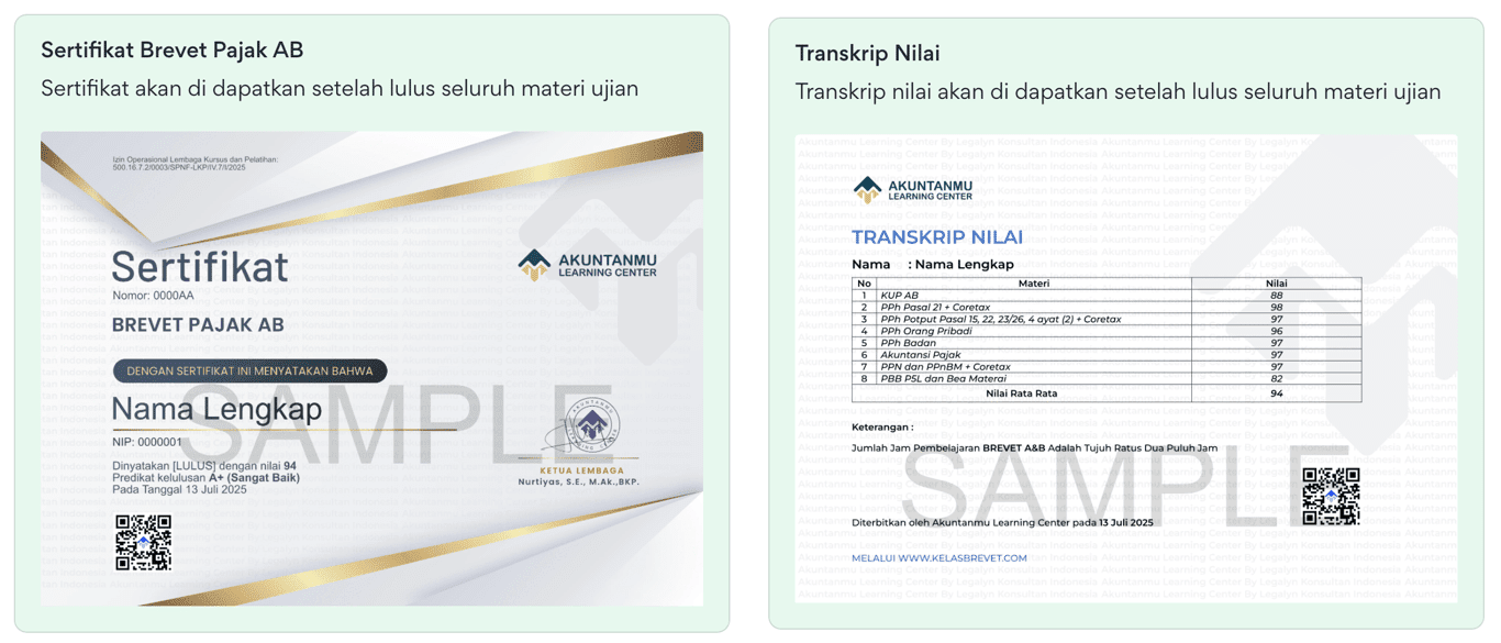 Kelas Brevet merupakan platform pelatihan Brevet Pajak AB yang diselenggarakan oleh Akuntanmu Learning Center By Legalyn Konsultan Indonesia. Didirikan sejak 2021, lembaga ini memiliki legalitas lengkap termasuk Izin Operasional LKP (Lembaga Kursus dan Pelatihan) dan memiliki standar pelatihan sesuai kebutuhan dunia kerja di bidang perpajakan.