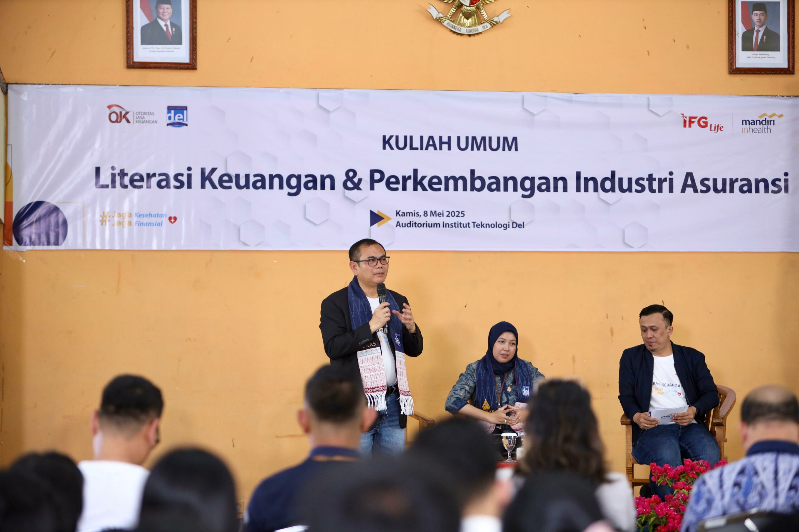 Friderica Widyasari Dewi, Kepala Eksekutif Pengawasan Perilaku PUJK, Edukasi dan Pelindungan Konsumen Otoritas Jasa Keuangan (OJK) selaku pembicara utama dalam kuliah umum, menuturkan “Indeks literasi keuangan nasional 2025, mengalami kenaikan positif dari 65,43% di tahun 2024 menjadi 66,46% di tahun 2025. Sementara itu, indeks inklusi keuangan nasional meningkat signifikan dari 75,02% di tahun 2024 menjadi 80,51% di tahun 2025. Tentu sinergi antar pemangku kepentingan seperti pada kegiatan literasi yang dilaksanakan oleh IFG Life dan Mandiri Inhealth bersama OJK dan Institut Teknologi Del ini merupakan kegiatan yang sangat positif untuk memperluas jangkauan literasi dan inklusi keuangan, khususnya di kalangan generasi muda”.