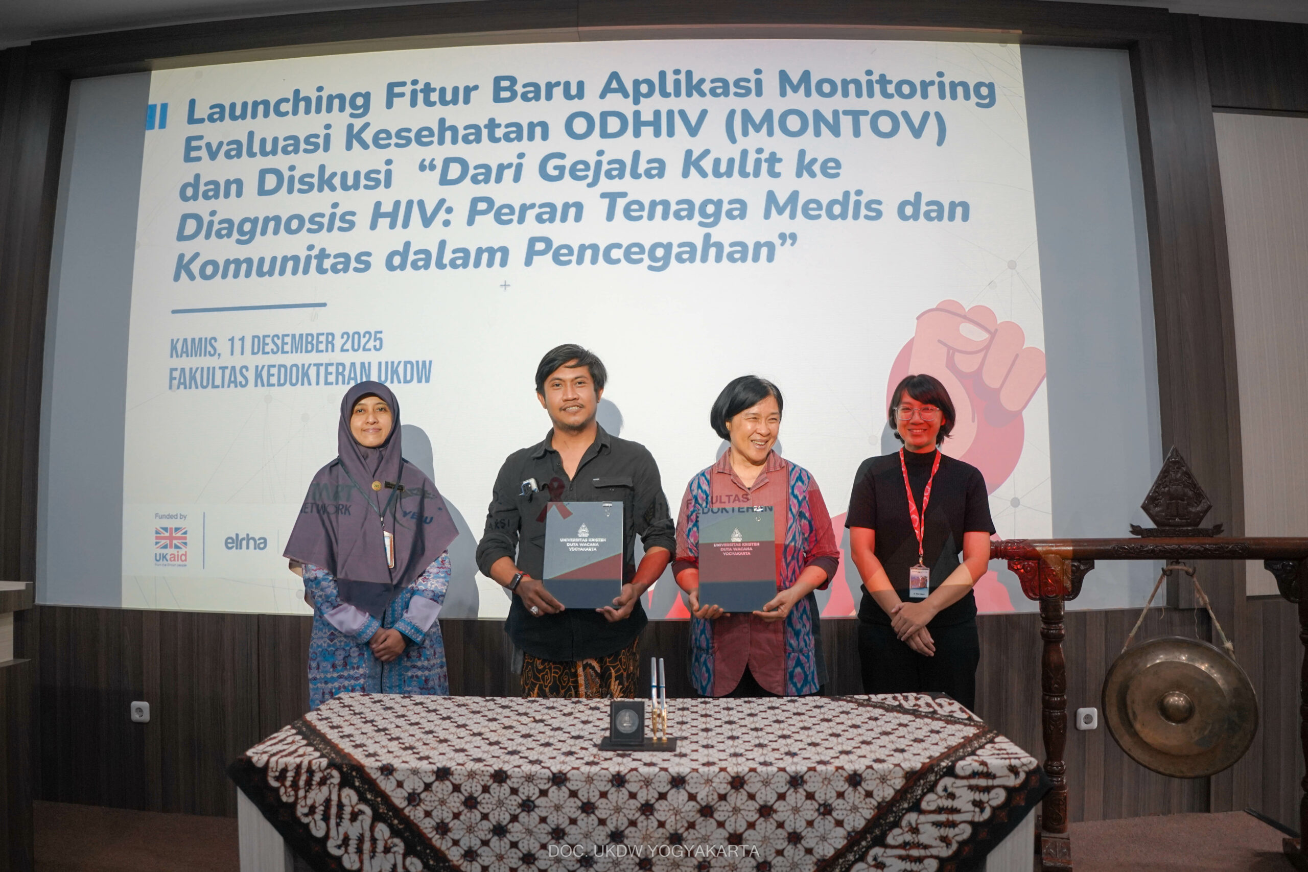 15 Desember 2025 – Perkumpulan Pita Merah Jogja bersama Fakultas Kedokteran Universitas Kristen Duta Wacana (FK UKDW) meluncurkan fitur terbaru Ruang Pengaduan pada aplikasi Monitoring Evaluasi Kesehatan Orang dengan HIV (Montov). Kegiatan berlangsung pada Kamis (11/12/2025) di Kampus FK UKDW dan dihadiri oleh perwakilan Dinas Kesehatan DIY, fasilitas pelayanan kesehatan, organisasi masyarakat, akademisi, serta komunitas pemerhati HIV.
