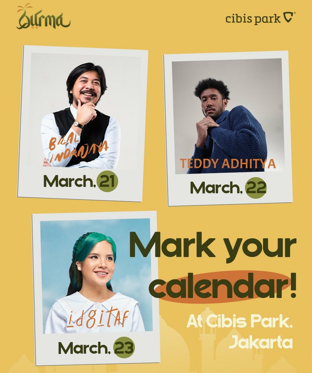 Sebagai bagian dari kemeriahan acara, QURMA menghadirkan musisi ternama Indonesia yang siap menghibur pengunjung dengan penampilan live mereka: