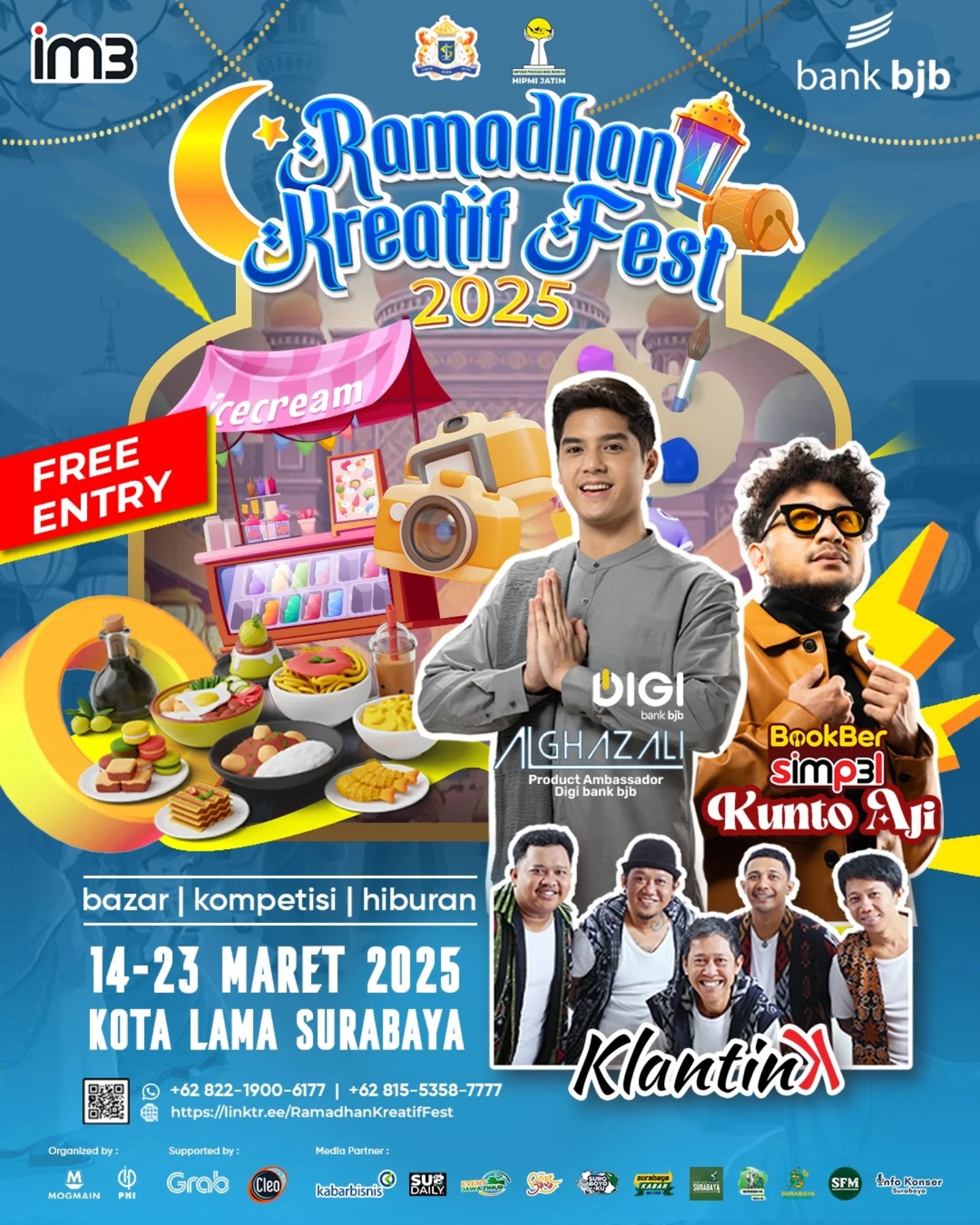 Surabaya, 12 Maret 2025 – Surabaya kembali menghadirkan acara spesial bagi masyarakat yang ingin mengisi waktu menjelang berbuka puasa dengan kegiatan seru. Ramadhan Kreatif Fest 2025 siap digelar di Taman Sejarah, Kota Lama, Surabaya mulai 14 hingga 23 Maret 2025. Acara ini dipersembahkan oleh Kamar Dagang dan Industri Indonesia Kota Surabaya serta HIPMI Jawa Timur.