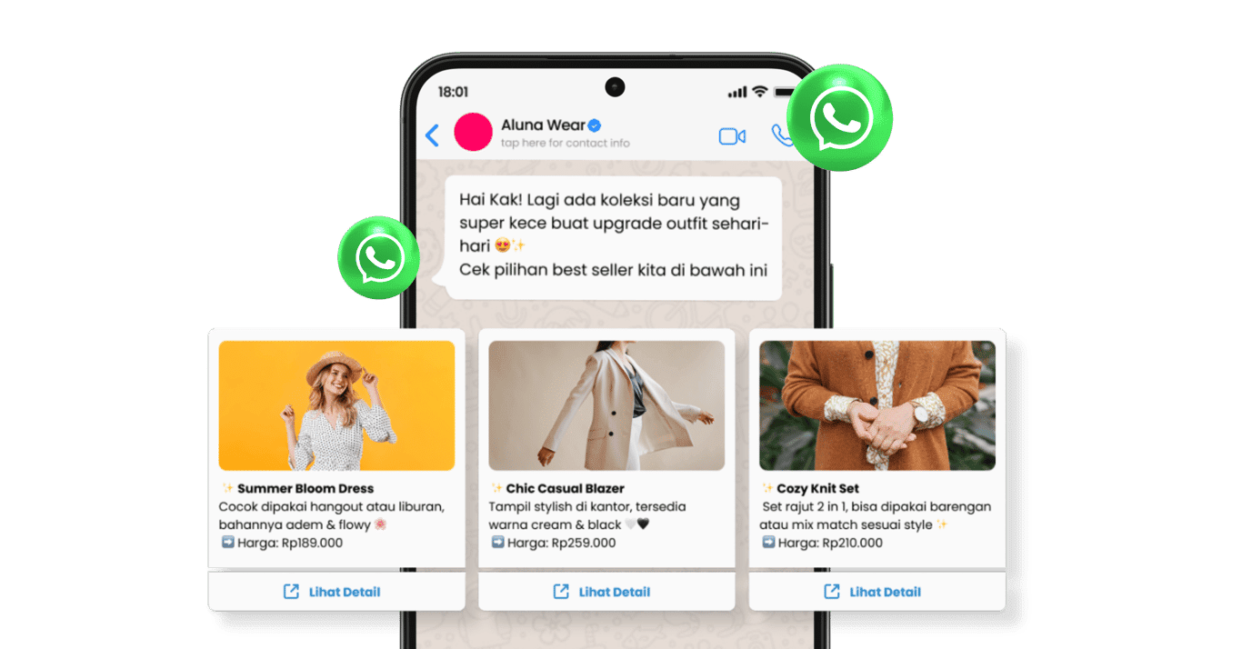 Pesan teks biasa sering kali tidak cukup kuat untuk membuat pelanggan berhenti scroll dan memperhatikan penawaran Anda. Mereka membutuhkan visual yang lebih kaya, cara penyajian yang lebih menarik, dan navigasi yang lebih mudah untuk melihat produk lain.
