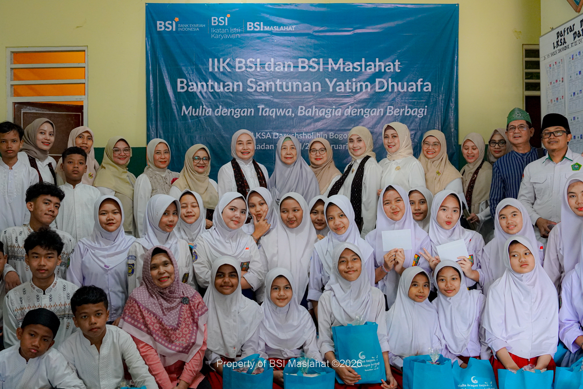 Bogor, 25 Februari 2026 – Dalam suasana Ramadan yang penuh keberkahan, BSI Maslahat bersama Ikatan Istri Karyawan BSI Pusat (IIK BSI Pusat) menyalurkan paket sembako dan santunan kepada anak-anak yatim di LKSA Darushsholihin, Bogor, pada Senin (23/02).