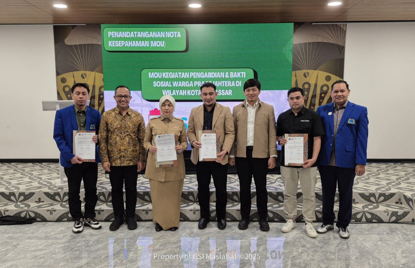Sebagai bentuk komitmen bersama, acara ini ditutup dengan penandatanganan nota kesepahaman antara BSI Maslahat dan mitra strategis. Penandatanganan ini menandai komitmen bersama untuk terus menggelar kegiatan sosial yang bermanfaat bagi masyarakat tidak mampu di Kota Makassar.