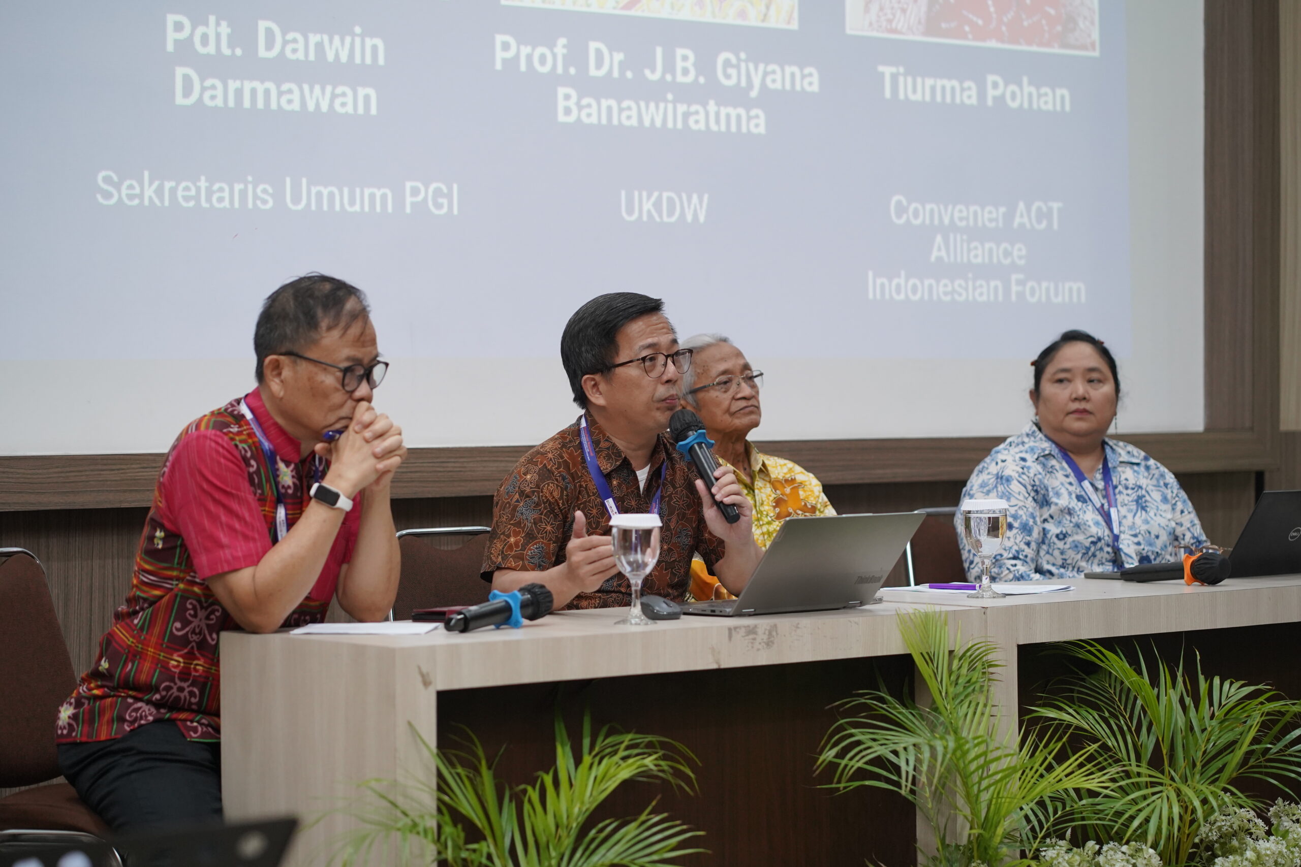 Sementara itu, Prof. J.B. Banawiratma, teolog senior dan dosen Fakultas Teologi UKDW, mengajak gereja untuk meninjau ulang akar teologi diakonia di tengah kompleksitas krisis global. Ia menilai bahwa dunia saat ini berada dalam era Capitalocene, yaitu zaman ketika kapital, kekuasaan, dan alam saling bertaut dan menentukan arah hidup manusia.