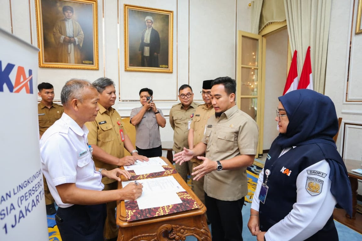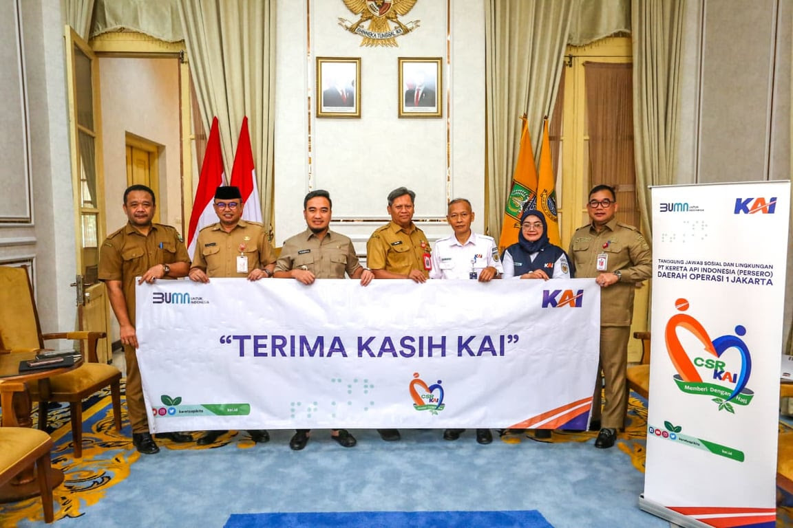 10 Februari 2026 – Melalui program Tanggung Jawab Sosial dan Lingkungan (TJSL), PT Kereta Api Indonesia (Persero) Daerah Operasi 1 Jakarta menyalurkan bantuan berupa 13 unit pompa air senilai Rp97.045.000 kepada Pemerintah Kota Cilegon. Bantuan ini merupakan wujud kolaborasi dalam menjaga lingkungan sekaligus mendukung keselamatan dan kelancaran perjalanan kereta api melalui penguatan sistem irigasi guna mencegah banjir. Penyerahan bantuan dilakukan secara simbolis pada Senin (9/2) di Rumah Dinas Wali Kota Cilegon. Bantuan diterima langsung oleh Wali Kota Cilegon Robinsar, didampingi Pj. Sekretaris Daerah Kota Cilegon Ahmad Aziz Setia Ade Putra serta Kepala Dinas PUPR Kota Cilegon TB. Dendi Rudiatna beserta jajaran Pemerintah Kota Cilegon.