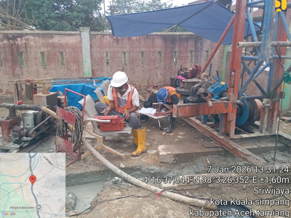 Sementara itu, pekerjaan di lokasi lain seperti Kantor Datok Alur Bemban baru dimulai dengan kedalaman awal 6 meter pascasurvei geolistrik, sedangkan Puskesmas Kejuruan Muda dan lokasi sumur dangkal di Kampung Suka Makmur tengah dalam tahap mobilisasi alat.