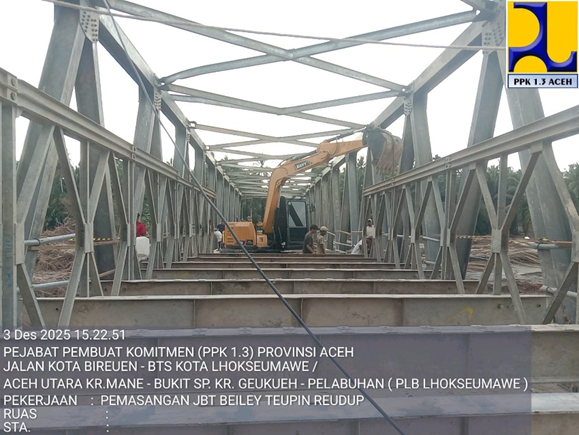 Guna mengatasi ruas jalan yang putus, Kementerian PU mempercepat mobilisasi dan pemasangan jembatan rangka baja (bailey) di sejumlah lokasi, antara lain: Teupin Mane, Alue Kulus, Enang-enang, Weihni Rongka, hingga Timang Gajah. Sebagian material jembatan telah tersedia di lokasi, sementara sisanya sedang dalam perjalanan menuju Aceh.