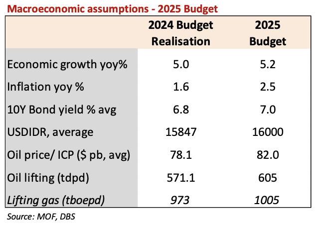 Selain itu, beberapa asumsi makro dalam APBN 2025 juga mungkin perlu ditinjau kembali. Sebagai contoh, mengacu pada nilai tukar USD/IDR di level 16.100 per USD, sementara saat ini rupiah berada di level yang lebih lemah. Harga Minyak Mentah Indonesia diasumsikan sebesar USD 82 per barel, sementara harga Brent saat ini sekitar USD 65 per barel. Proyeksi pertumbuhan dan inflasi juga kemungkinan memiliki beberapa perbedaan.