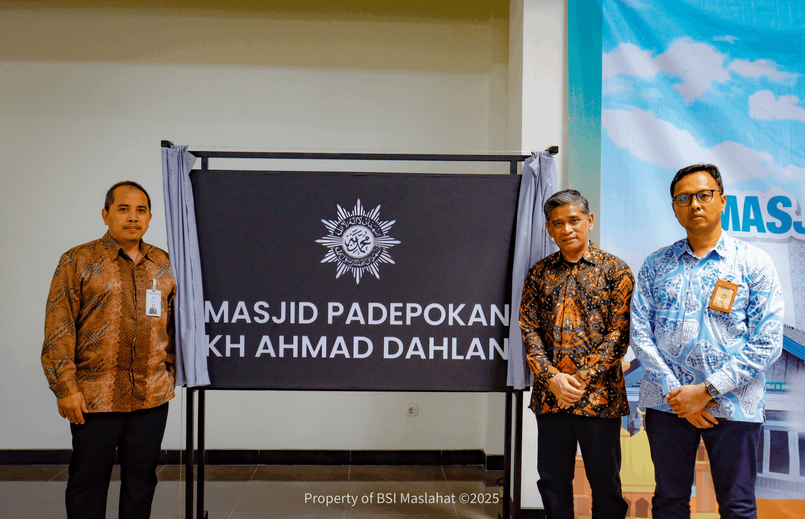 Yogyakarta, 17 September 2025 – BSI Maslahat bersama Muhammadiyah meresmikan Masjid  Padepokan KH Ahmad Dahlan yang berlokasi di Jalan Kyai Mojo No. 33, Daerah Istimewa  Yogyakarta. Peresmian masjid ini merupakan bagian dari komitmen BSI Maslahat dalam  mendukung pengembangan infrastruktur keagamaan yang membawa manfaat berkelanjutan  bagi masyarakat. Peresmian tersebut dihadiri oleh Wakil Ketua Perwakilan Wilayah  Muhammadiyah DIY, Prof Dr. H. Ariswan, M.Si, DEA; Area Manager Yogyakarta PT Bank  Syariah Indonesia Tbk (BSI), Hari Nova Kurniawan; Branch Manager Yoyga Kertanegara BSI,  Afrizal, dan Manager Networking Group BSI Maslahat, Lucky Firmansyah.
