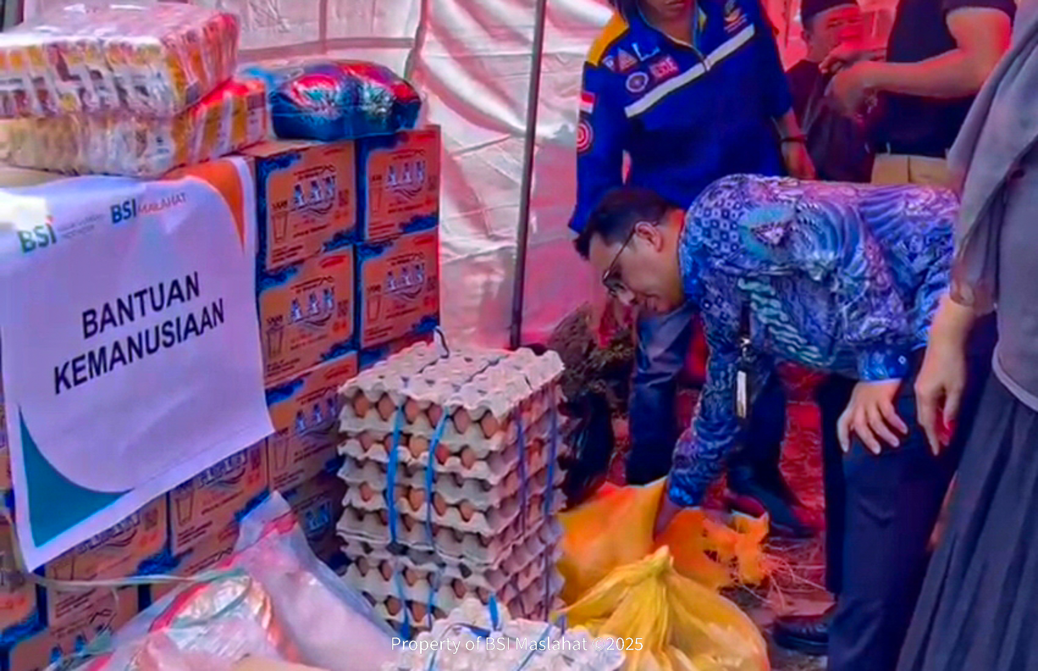 Sulawesi Selatan, 10 Juni 2025 – BSI Maslahat dan BSI Region X Makassar salurkan bantuan kemanusiaan bagi penyintas banjir di kecamatan Bantaeng dan Kecamatan Bissappu, Kabupaten Bantaeng, Sulawesi Selatan. Sebanyak 200 paket sembako dan makanan telah diserahkan langsung oleh branch manager BSI KCP Bantaeng, Azwar, ke posko banjir BNPB Kabupaten Bantaeng pada 08/07/2025.