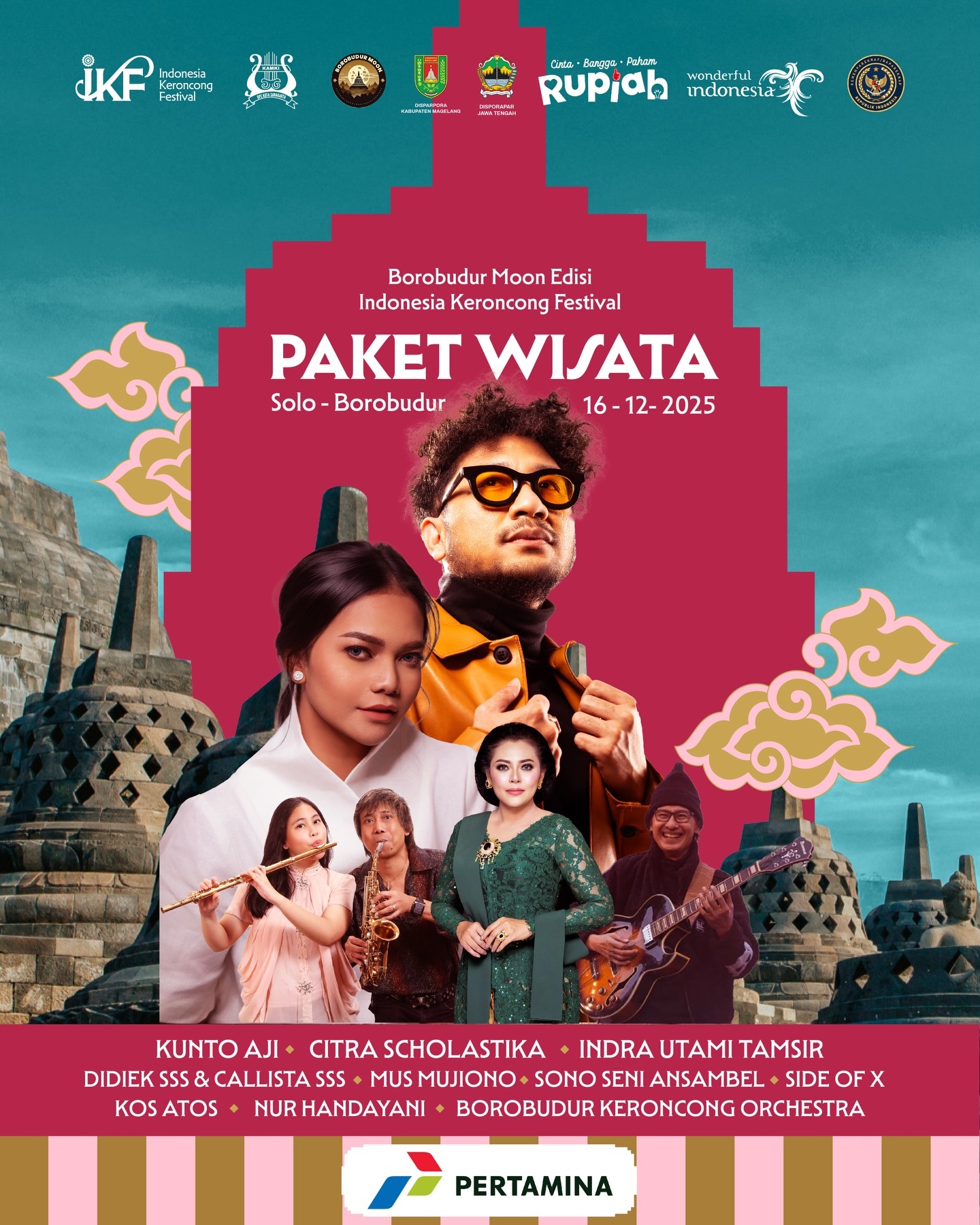 Informasi resmi yang diunggah akun @officialwisatamagelang dan @indonesiakeroncongfestival menyebutkan bahwa acara ini merupakan bagian dari rangkaian Indonesia Keroncong Festival yang kali ini mengusung nuansa malam purnama di kawasan candi Buddha terbesar di dunia tersebut.