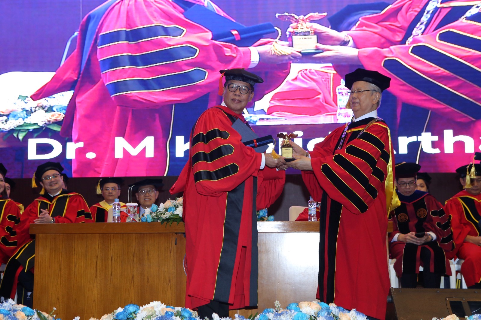 Dr. (H.C.) James Riady, Pendiri Yayasan Pendidikan Pelita Harapan (YPPH), juga memberikan pesan khusus kepada para lulusan. Ia menekankan bahwa wisuda bukanlah akhir, melainkan awal dari fase kehidupan baru (commencement). Dalam konteks dunia yang penuh tantangan dan perubahan—baik secara politik, ekonomi, maupun teknologi.